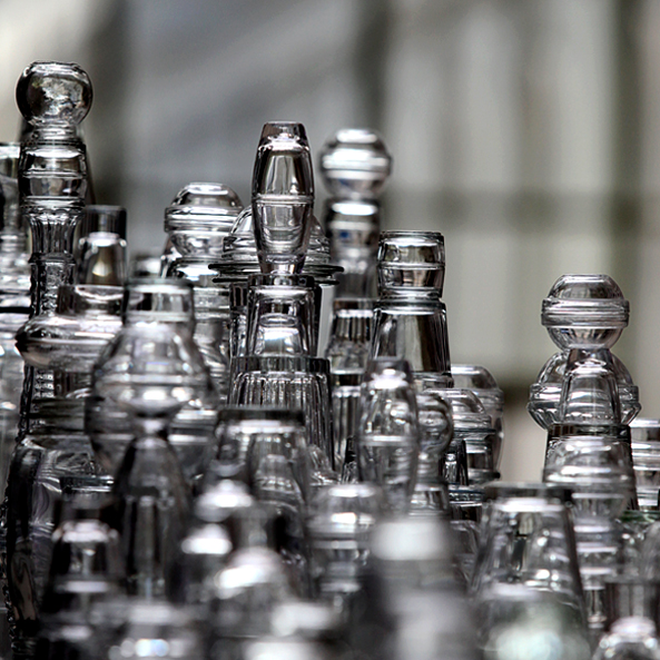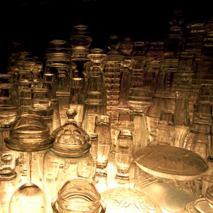 A glass city stretches horizontally into the distance. Clear turrets and towers of glass reach vertically upwards – amber light refracting through their faceted surfaces creating amorphous patterns that shift and change as the lights dim and brighten. The illusion of an extraordinary glass city is created with through the...