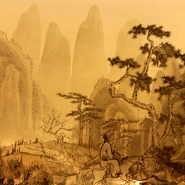 The work explores the landscape genre as well as the concept of perspective through Eastern and Western painting. Atmospheric Chinese landscapes are given actual physical depth through the physical separation of its pictorial elements, and reformatted into a three-dimensional, western one-point perspective. This move from two-dimensional to three-dimensional goes beyond...
