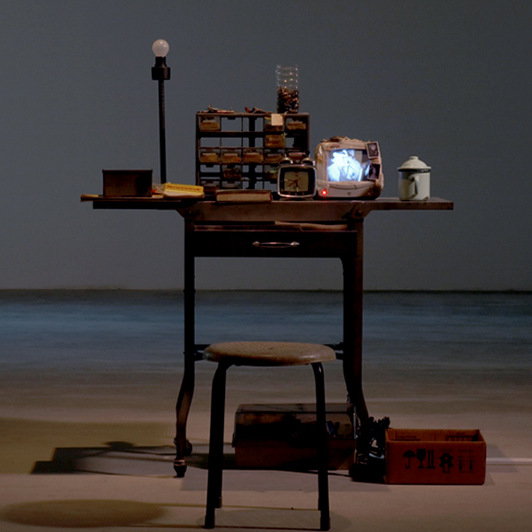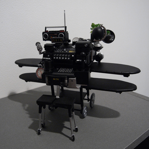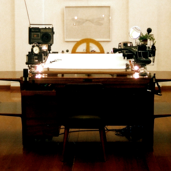 Each work begins from a dream – a simple desire, a wish. Based on ficticious characters, everyday objects are removed from their normal contexts and functions in an atttempt to physically realise a unfulfilled childhood fantasy or dream. The desk being a common place from which dreams are first imagined...